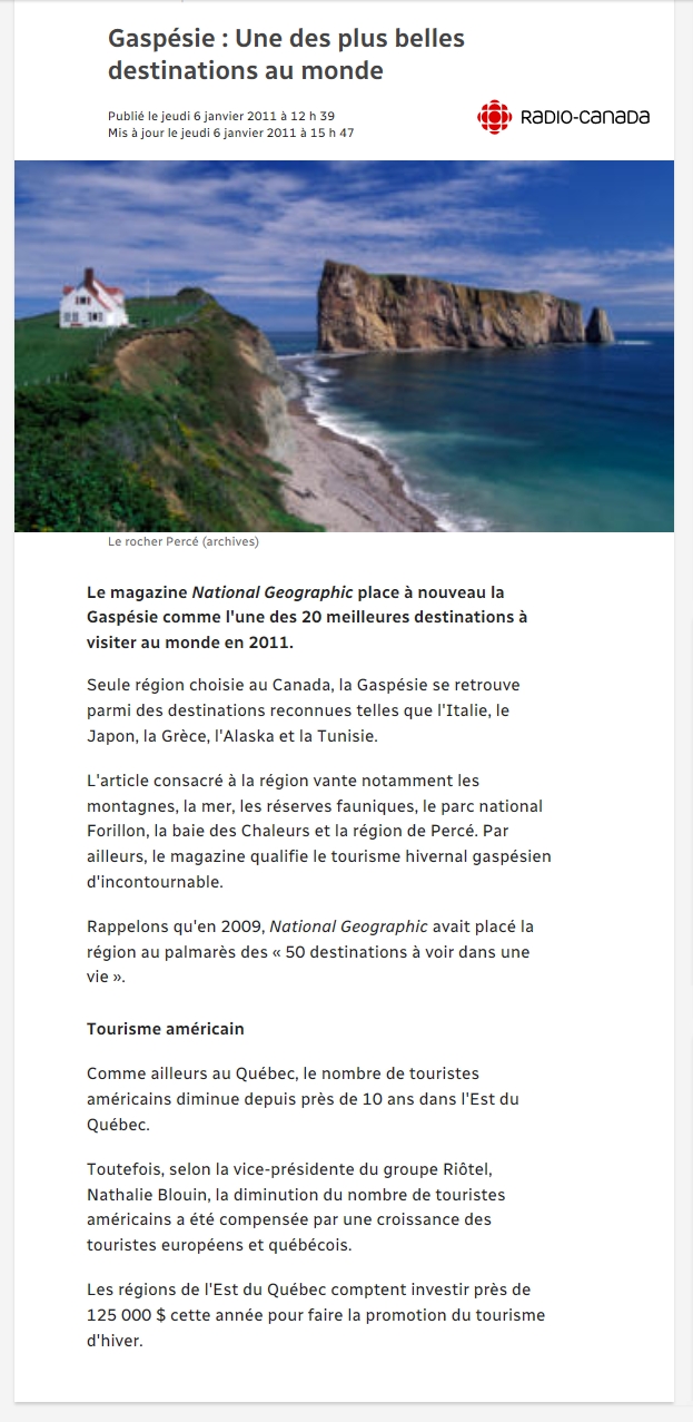 Des couchers de soleil superbes. Un site magnifique, sur le bord de la mer, aux pieds des imposantes Chic-Chocs. À ne pas négliger, La Tourelle, structure étonnante, vaut le petit détour. Aussi, juste à côté, vous trouverez le meilleur Fish & Chips de ce côté-ci de la planète chez Cantine la P’Tite Bertha, vue sur la mer, servie avec la plus affable des gentillesses…! Merci à Carmen et Denis de nous avoir reçus dans votre petit bout de paradis!